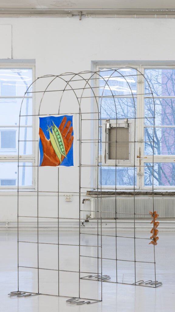 Calling herself “a soft-hearted person,” the Helsinki-based artist speaks different languages—from painting and ceramics to textiles and installation, and even gardening itself. Her alphabet speaks of care, fragility, and queerness, forming a visual text that unfolds as you enter it gently and silently, eager to learn rather than to take.