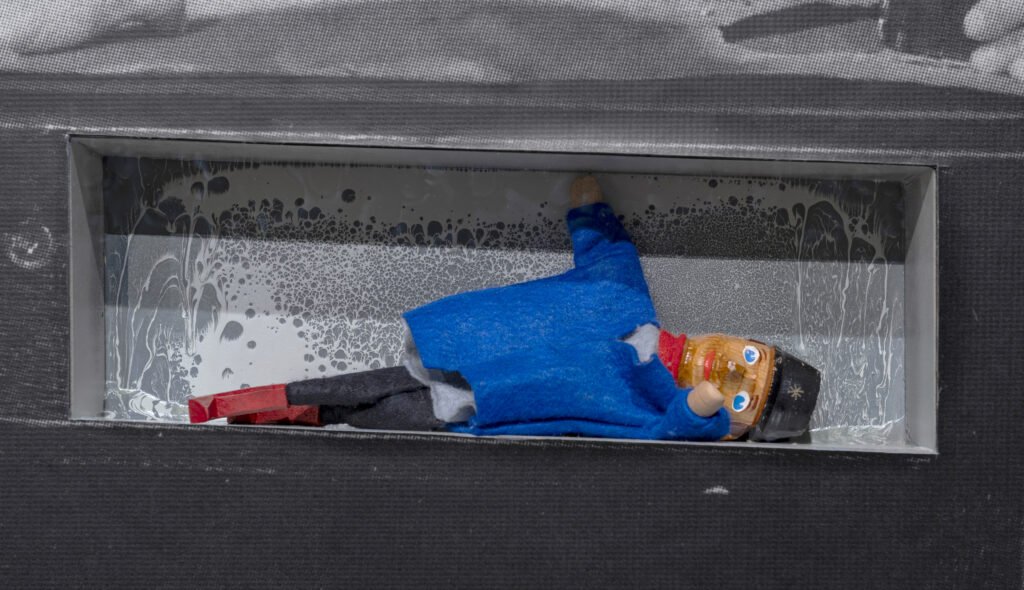 The exhibition—and Anghel’s research itself—addresses the social and political anomalies that we struggle so much to acknowledge. By exploring different languages and speaking through a collection of images and objects, Anghel builds a micro-universe in which no answers are given, but many disturbing doubts arise.