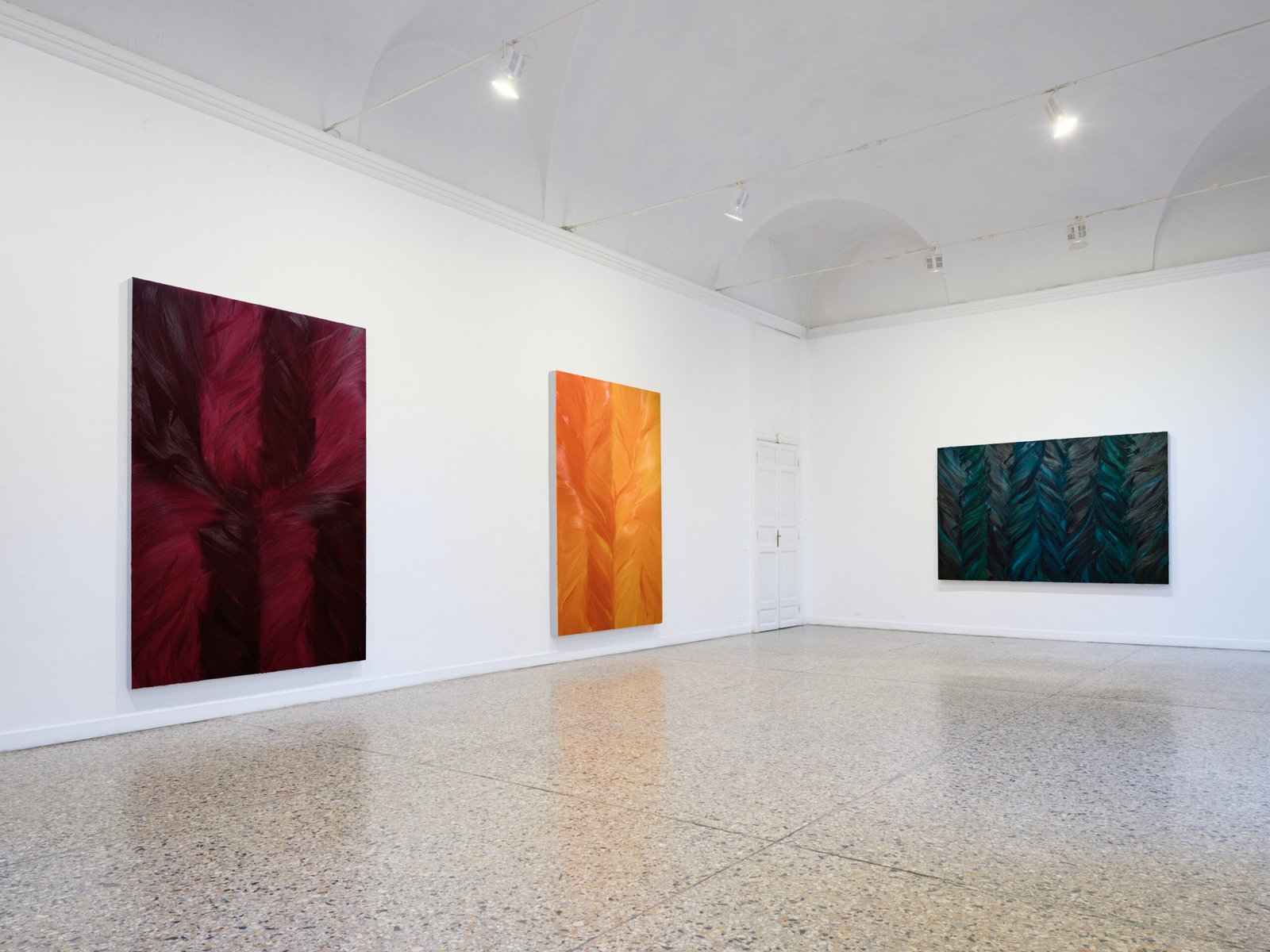 Looking at these works requires a different pace. Without figures to guide interpretation, attention drifts across texture and repetition, following the surface until meaning emerges gradually. The image never closes completely, remaining suspended in the duration of the gaze.
